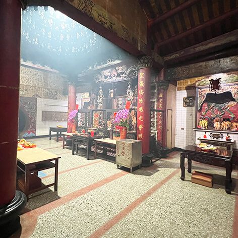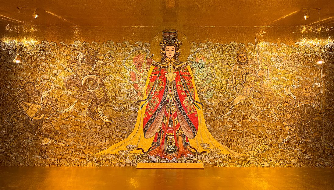 本宮媽祖金殿是由三百萬個金、銀以及玻璃馬賽克手工剪貼建造而成,將個體大小相同的馬賽克磁磚手工一個一個黏上去,使馬賽克拼貼藝術在裝飾中能充分展示出玻璃藝術的優美典雅、在不同的採光效果下產生豐富的立體視覺,是相當費時且須細心的精緻工程。